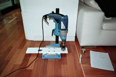Dieses Anbohrgerät ist eine Eigenentwicklung und wird zum exakten Bohren von Ringnuten bei der Durchführung von Haftzugprüfungen eingesetzt.