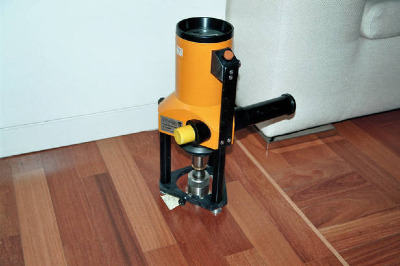 Das Prüfgerät MicroMess wurde von der Firma Wolf zur Vermessung von Laminat- und Fertigparkettelementen entwickelt. Durch die hohe Genauigkeit der Messuhr können konvexe und konkave Verformungen der Elemente zuverlässig ermittelt werden.